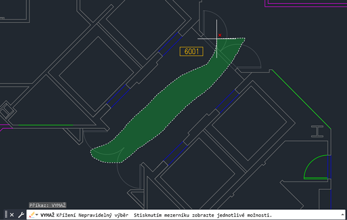 Všimněte si, že na příkazovém řádku je vyznačeno, že právě používáte nepravidelný výběr křížení, což znamená, že bude vybráno vše, co je protnuto a uzavřeno.