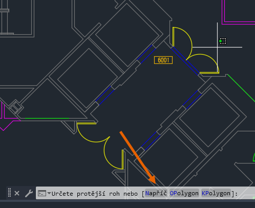 V tomto příkladu chci vybrat všechny obrysy kóje v mém výkresu.