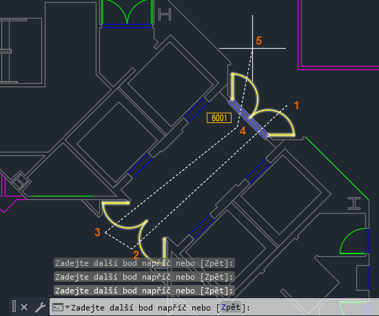 Zadejte body čáry výběru napříč, která protíná dveře.