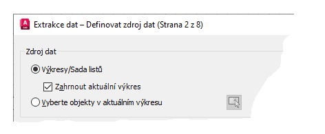 Poznámka: Při vytváření nového souboru extrakce dat má soubor příponu .dxe v aplikaci AutoCAD 2024 nebo starších a .dxex počínaje aplikací AutoCAD 2025.