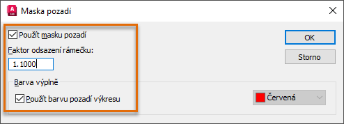V části Barva výplně zaškrtněte možnost Použít barvu pozadí výkresu, pokud aktuálně není zaškrtnuta.