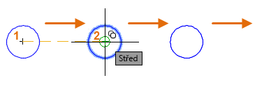 Potom s využitím uchopení objektu ve středu klikněte na střed původní kružnice 1, potom na střed druhé kružnice 2 a tak dále.
