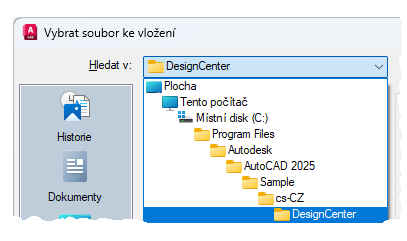 - Přejděte do složky DesignCenter, kde jsou uloženy různé vzorové výkresy.