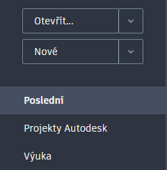 Po spuštění aplikace AutoCAD klikněte na kartě Začít na tlačítko Nový, čímž zahájíte nový výkres, nebo klikněte na tlačítko Otevřít, čímž zahájíte práci na existujícím výkresu.