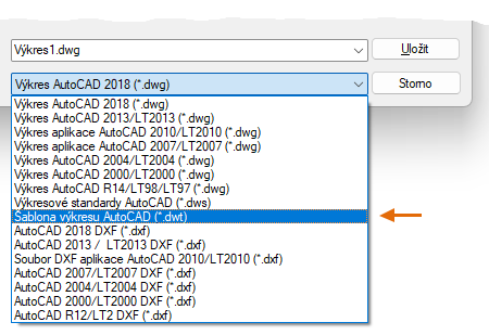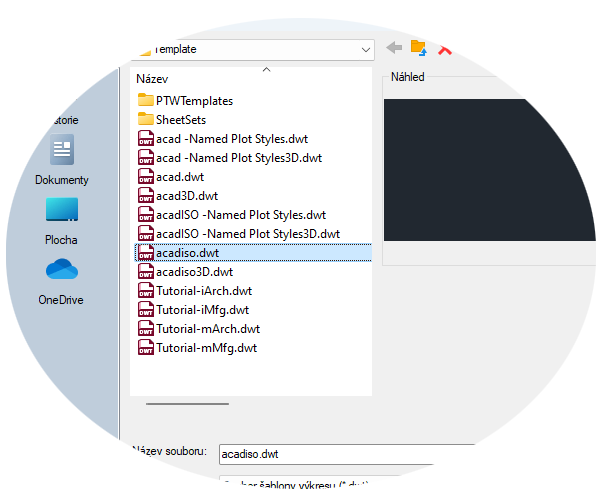 Všechna tato nastavení lze uložit do souboru šablony výkresu. Klikněte na tlačítko Nový a vyberte si z několika souborů šablon výkresu: