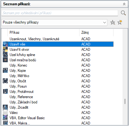 Na kartě Vlastní v podokně Seznam příkazů vyberte příkaz, k němuž chcete přidat štítek.