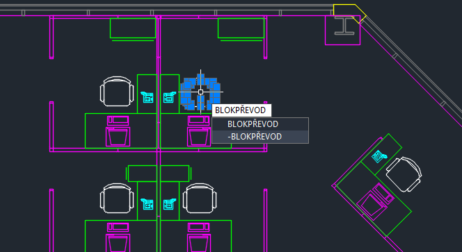 -BLOKPŘEVOD – spustí se na příkazovém řádku a převede vybrané entity a identické instance na bloky.
