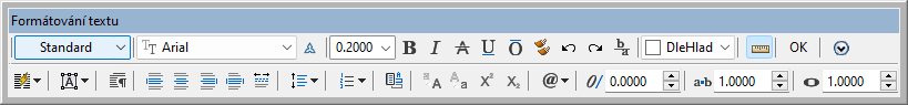 Řídí zobrazení panelu nástrojů Formátování textu. Tato možnost nastavuje systémovou proměnnou MTEXTTOOLBAR. (U jednořádkového textu není dostupné.)