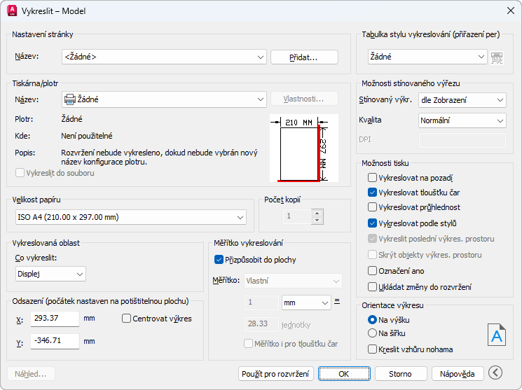 Udává část výkresu, která má být vykreslena. V poli Co vykreslit můžete vybrat oblast výkresu k vykreslování.