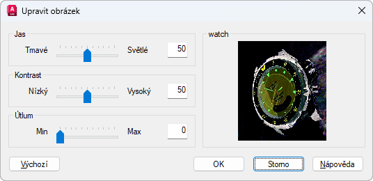 Nastavení těchto hodnot změní zobrazení obrázku, nezmění však obrázek jako takový.