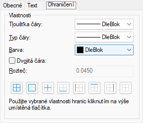 Určuje rozteč u ohraničení pomocí dvojité čáry. Výchozí rozteč je 0.1800.