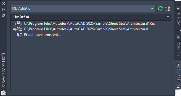 Přidáním nebo odstranění umístění složek můžete řídit, které výkresy jsou dostupné pro aktuální sadu listů.