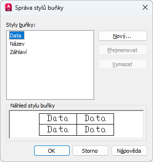 Zobrazí všechny styly buněk v rámci aktuálního stylu tabulky a umožní vytvořit nebo odstranit styl buňky.
