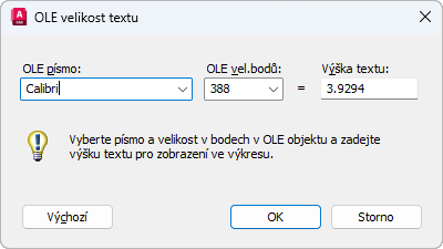 Měřítko OLE objektu je změněno automaticky a bude přizpůsobeno velikosti textu.