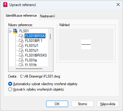 Chcete-li vybrat referenci, která má být editována, vyberte v této referenci objekt. Pokud vyberete objekt, který je součástí jedné nebo více vnořených referencí, jsou v dialogu zobrazeny vnořené reference.