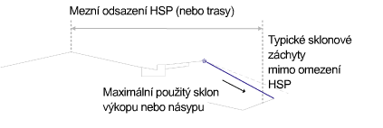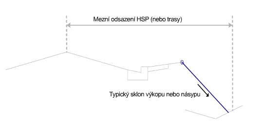Typický sklon linie paty svahu umožňuje, aby záchytný bod spadal do limitu odsazení stanoveného numerickou hodnotou nebo umístěním trasy.