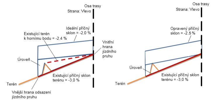 | Opravený příčný sklon | Opravený příčný sklon bude upraven na hodnotu -2.5 %. |