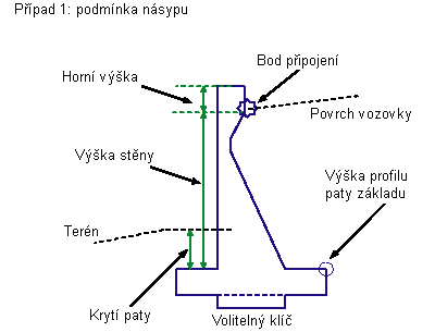 V režimu návrhu nakreslí podsestava tvar opěrné zdi podle specifikace dané hodnotami vstupních parametrů, přičemž se předpokládá, že se podsestava nachází ve stavu násypu.