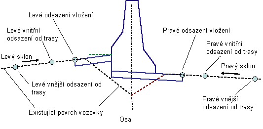 Může se použít k výpočtu odsazení levého bodu vložení z trasy. Jako cíle pro určení tohoto odsazení lze použít následující typy objektů: trasy, křivky, návrhové linie nebo polygony zaměření. |