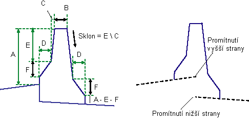 Jestliže profil horní části bariéry je dán jako cílový parametr, výška bariéry je řízena profilem. Kóta E se může lišit za účelem dosažení této výšky.