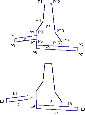 V následující tabulce jsou pro tuto podsestavu uvedeny kódy bodů, spojnic a tvarů, ke kterým byly přiřazeny kódy. Kódy bodů, spojnic a tvarů této podsestavy, které nemají přiřazeny kódy, nejsou v této tabulce zahrnuty.