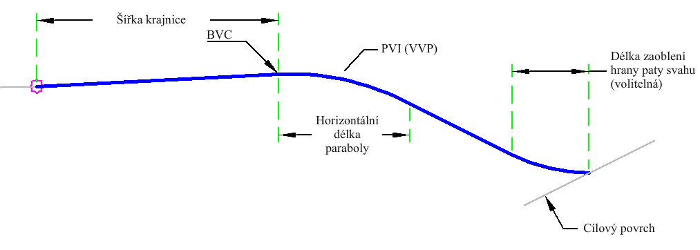 Podsestava KrajniceParabolickáHranaPatySvahu umožňuje provést zaoblení ve vrcholu výškového polygonu mezi spojnicemi krajnice a hrany paty svahu i zaoblení mezi spojnicí hrany paty svahu a cílovým povrchem.