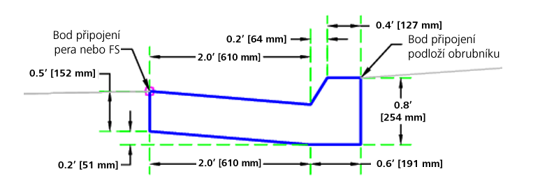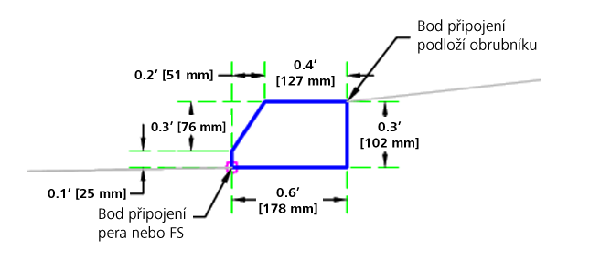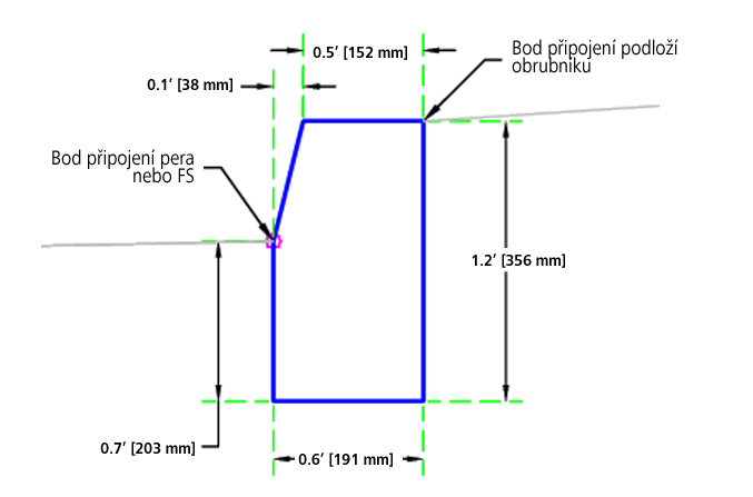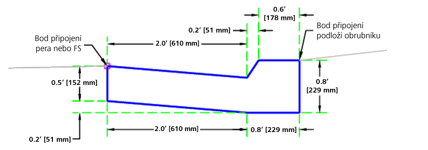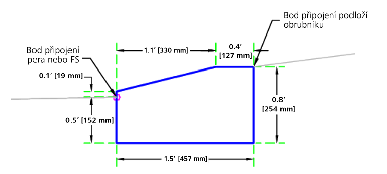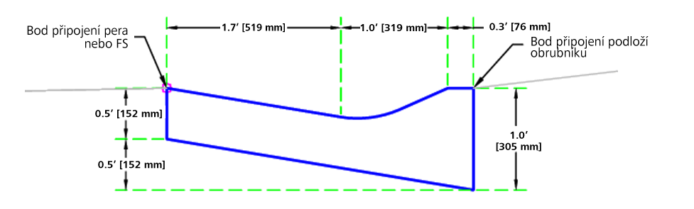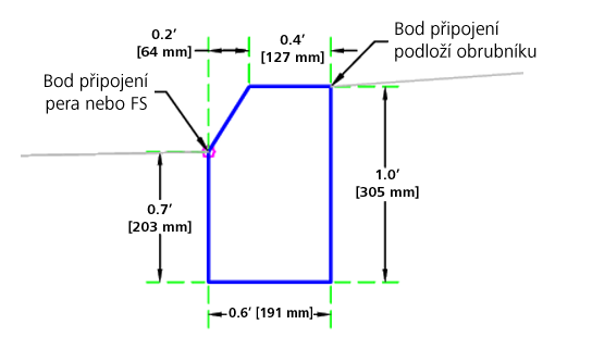 Podsestava ObrubníkyCaltrans vloží spojnice za účelem vytvoření obrubníků a rigolů na základě standardního půdorysu Caltrans RSP A87A.