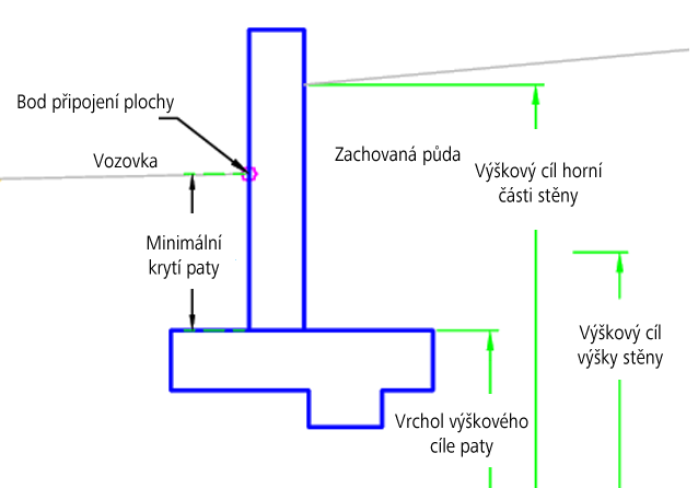 | Výška stěny | Slouží k řízení výškových kót použitých k vytvoření opěrné zdi. Jako cíle lze pro určení výšky použít následující typy objektů: profily, 3D křivky, návrhové linie nebo polygony zaměření. | Požadováno |