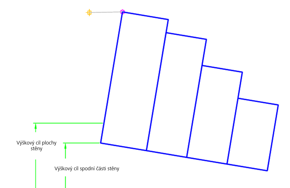 | Plocha zdi | Může se použít k nastavení bodu výšky plochy zdi. Jako cíle lze pro určení výšky použít následující typy objektů: profily, 3D křivky, návrhové linie nebo polygony zaměření. | Volitelné (bod připojení = horní část zdi) |