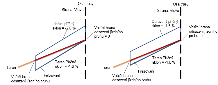 | Opravený příčný sklon | Opravený příčný sklon bude mít hodnotu -1.5 %. |