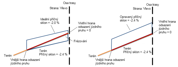 | Opravený příčný sklon | Opravený příčný sklon bude mít hodnotu -1.8 %. |