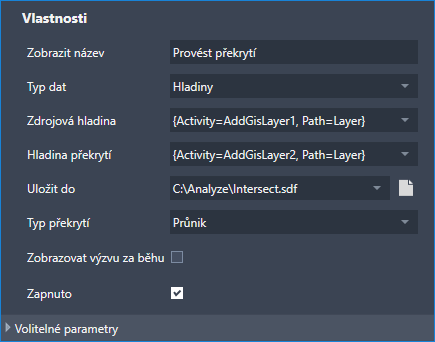 Pokud pracovní postup vyžaduje parametry pro některé aktivity, zobrazí výzvu.