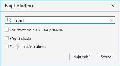 - Rozlišovat malá a velká písmena: Vyhledává v názvech hladin znaky, které spolu částečně sousedí, a rozlišuje malá a velká písmena.