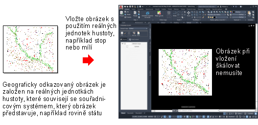 Následující příklad ukazuje vztah mezi jednotkami hustoty a obrázkem, který je geodeticky odkazován. Protože nelze zvažovat měřítko na papíru, můžete vložit obrázek pomocí jednotek, které obrázek představuje, například stopy nebo míle, a při jeho vložení pak není potřeba měřítko nastavovat.