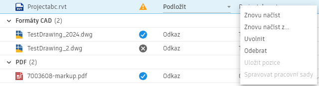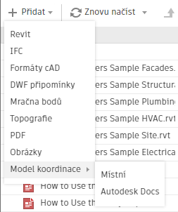 Pomocí tlačítka Přidat můžete do aplikace Revit přenést referenční data.