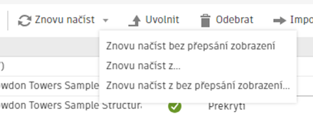 K provedení požadovaných akcí použijte nástroje, které naleznete v horní části (např. načtení s přepsáním zobrazení nebo bez něj, uvolnění, odstranění atd.). Tyto nástroje jsou dynamicky generovány na základě typu a stavu připojeného souboru.