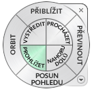 Nástroj Prohlížet na nástroji SteeringWheels umožňuje vertikální i horizontální otáčení aktuálního pohledu.