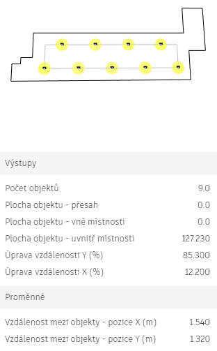 Na základě těchto výsledků lze za optimální rozvržení považovat devět stolů ve dvou řadách.