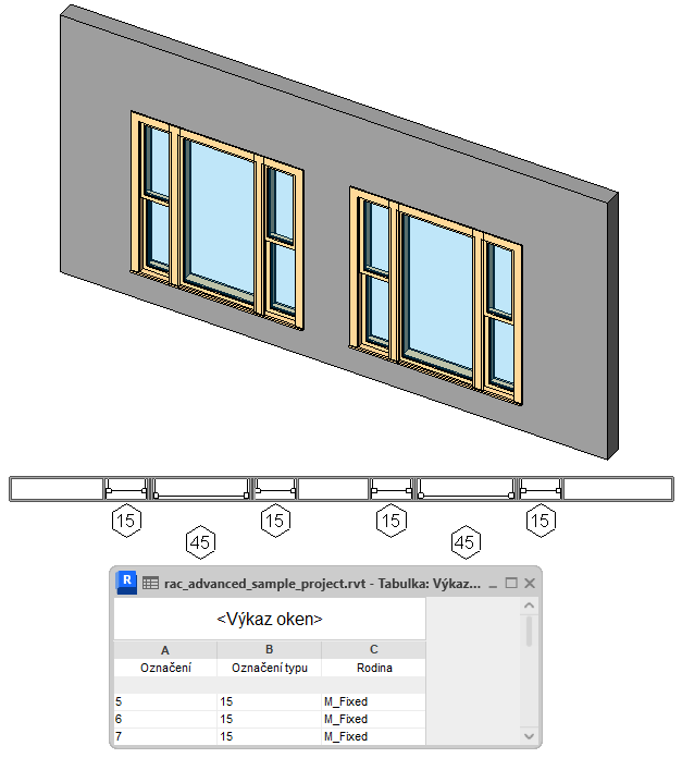 Když používáte vnořené a sdílené rodiny, můžete sdílené rodiny vykazovat jako jednotlivé instance. U rodiny, která obsahuje sdílené a vnořené rodiny, lze jednotlivé instance vnořené rodiny vykazovat samostatně. V rámci výpisu je možné přečíslovat jednotlivé instance vnořené rodiny.