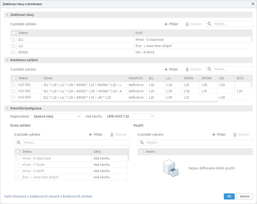 Další informace naleznete v části Zatěžovací stavy a kombinace (2025.3).