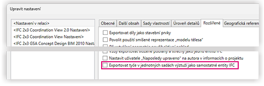 Další informace naleznete v tématu Možnosti nastavení exportu do formátu IFC.