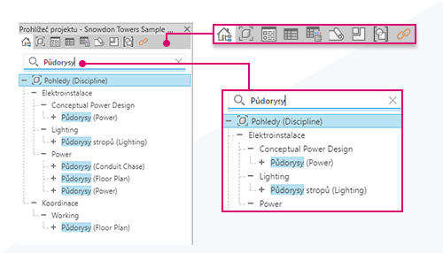 Další informace o vyhledávání a navigaci naleznete v části Prohlížeč projektu.