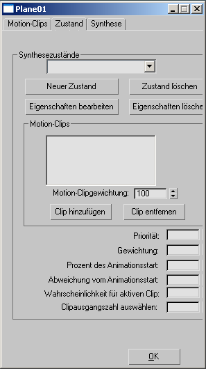 Zeigt das Dialogfeld "Motion-Clip auswählen" an. Wählen Sie einen Clip aus, und klicken Sie auf "OK", um dem aktuellen Zustand einen Clip hinzuzufügen.