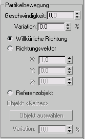 Mit dieser Option wird die Richtung der Partikel durch einen Vektor festgelegt, der mit den drei Zahlenauswahlfeldern "X", "Y" und "Z" definiert wird.