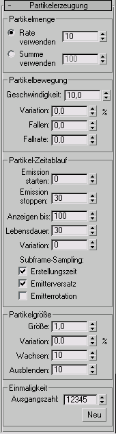 In diesem Rollout legen Sie Anzahl, Größe und Bewegung der Partikel fest.