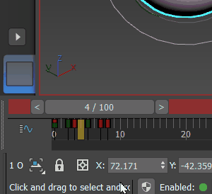 Die Keys werden mit farblicher Kennzeichnung angezeigt, damit Sie leicht erkennen können, welche Art von Key auf einem Frame vorhanden ist. Positions, Rotations und Skalierungs-Keys sind rot, grün bzw. blau, und nicht-Transformations-Keys (z. B. Modifikatorparameter) sind grau. Sie können die Farben im Dialogfeld "Benutzeroberfläche anpassen", was davon abhängt, ob der Key ausgewählt ist oder nicht. Der Frame-Indikator ist eine ähnliche Leiste, die blau angezeigt wird.