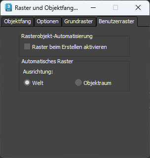 Über die Registerkarte "Benutzerraster" werden die automatische Aktivierung von Rasterobjekten sowie die Einstellungen für das automatische Raster gesteuert.