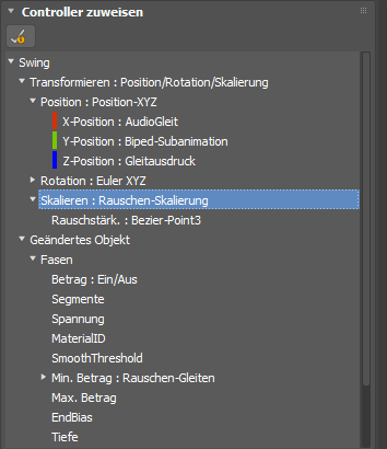 Im Rollout "Controller zuweisen" werden einzelnen Objekten verschiedene Transformationscontroller zugewiesen. Sie können Controller auch in der Spuransicht zuweisen. Animations-Controller sind Plug-In-Module, die alle Animationsaufgaben in 3ds Max übernehmen. Eine vollständige Liste der verfügbaren Animations-Controller finden Sie unter Animations-Controller.