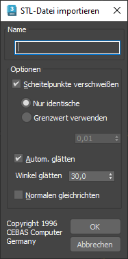 - Verschweißt übereinanderliegende Scheitelpunkte in der STL-Datei zu einzelnen Scheitelpunkten im 3ds Max-Netz.