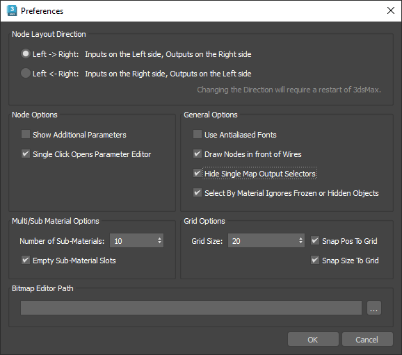 Anmerkung: Sie müssen 3ds Max neu starten, damit Änderungen an der Layout-Richtung wirksam werden.